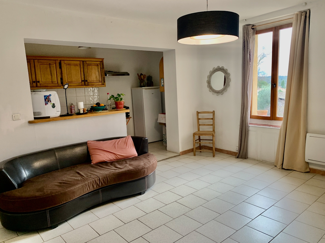 Tavernes (83670)À Tavernes, appartement T2 d’environ 52 m², rénové, situé au 1er étage d’une petite copropriété de 4 lots, au centre du village, avec toutes les commodités accessibles à pied. Exposé sud, avec une vue sur la campagne, il se compose d’une pièce de vie semi-ouverte sur une cuisine meublée, une chambre, ainsi que d’une salle d’eau avec WC. En termes d’équipements, ce bien bénéficie de chauffage électrique, double vitrage et raccordement au tout-à-l’égout. Performance énergétique : classe C, émissions de GES A. Consommation énergétique finale : 56 kWh/m²/an.