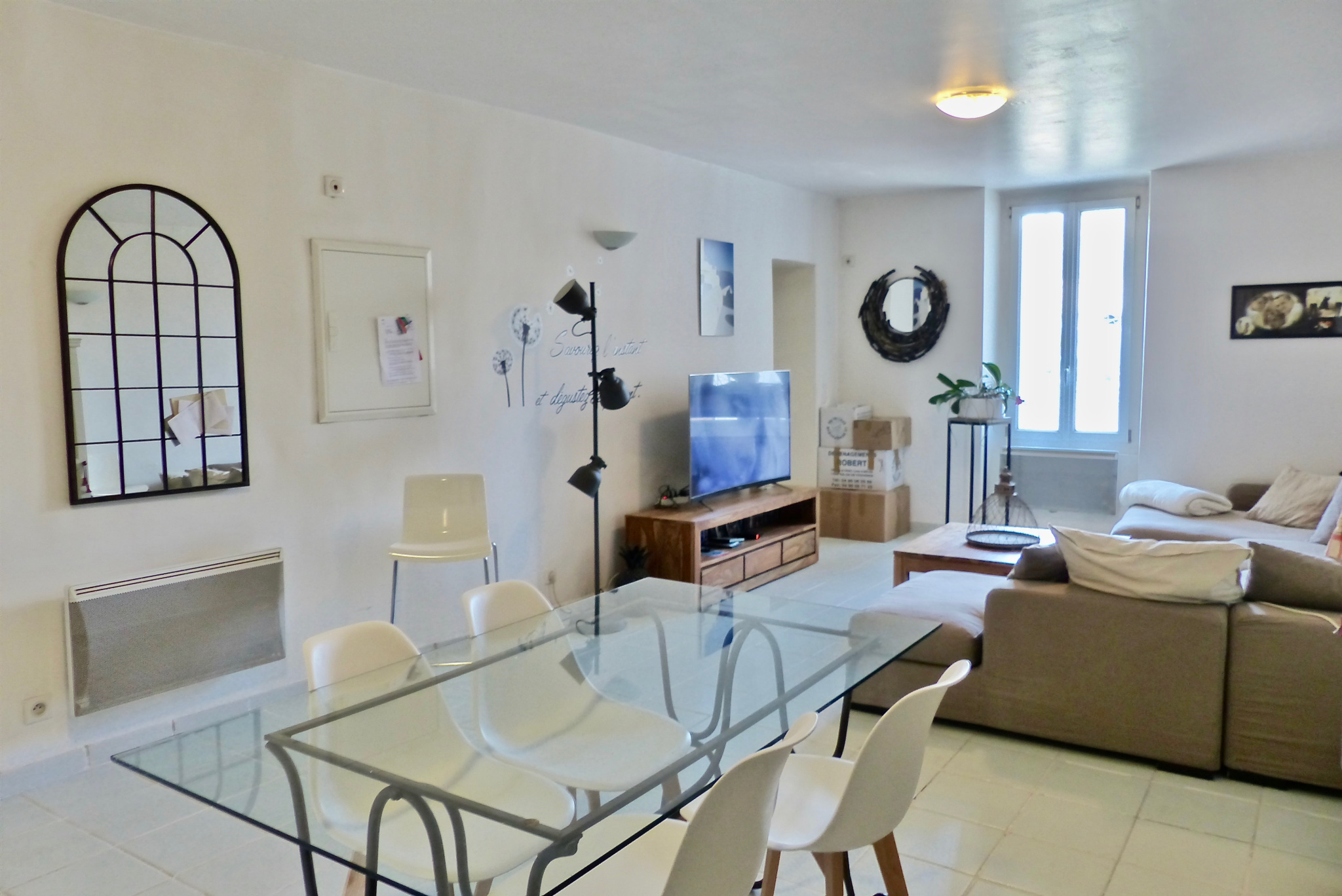 Tavernes (83670)Dans le village de Tavernes, un joli appartement T2 rénové de 65 m2 habitables environ, traversant et lumineux, au premier étage d'un immeuble de 4 lots, très propre et bien entretenu avec toutes les commodités du village à pied. Il se compose d'une pièce de vie de 36 m2 environ avec cuisine ouverte équipée avec plaque à induction et four, une chambre de 17 m2 et une grande salle de bain avec baignoire, douche, WC et buanderie. Il bénéficie du double vitrage PVC, chauffage individuel par convecteurs électriques et il est raccordé au tout à l'égout. Consommation finale 43 kWh/m²/an. Les informations sur les risques auxquels ce bien est exposé sont disponibles sur le site Géorisques http://www.georisques.gouv.fr.