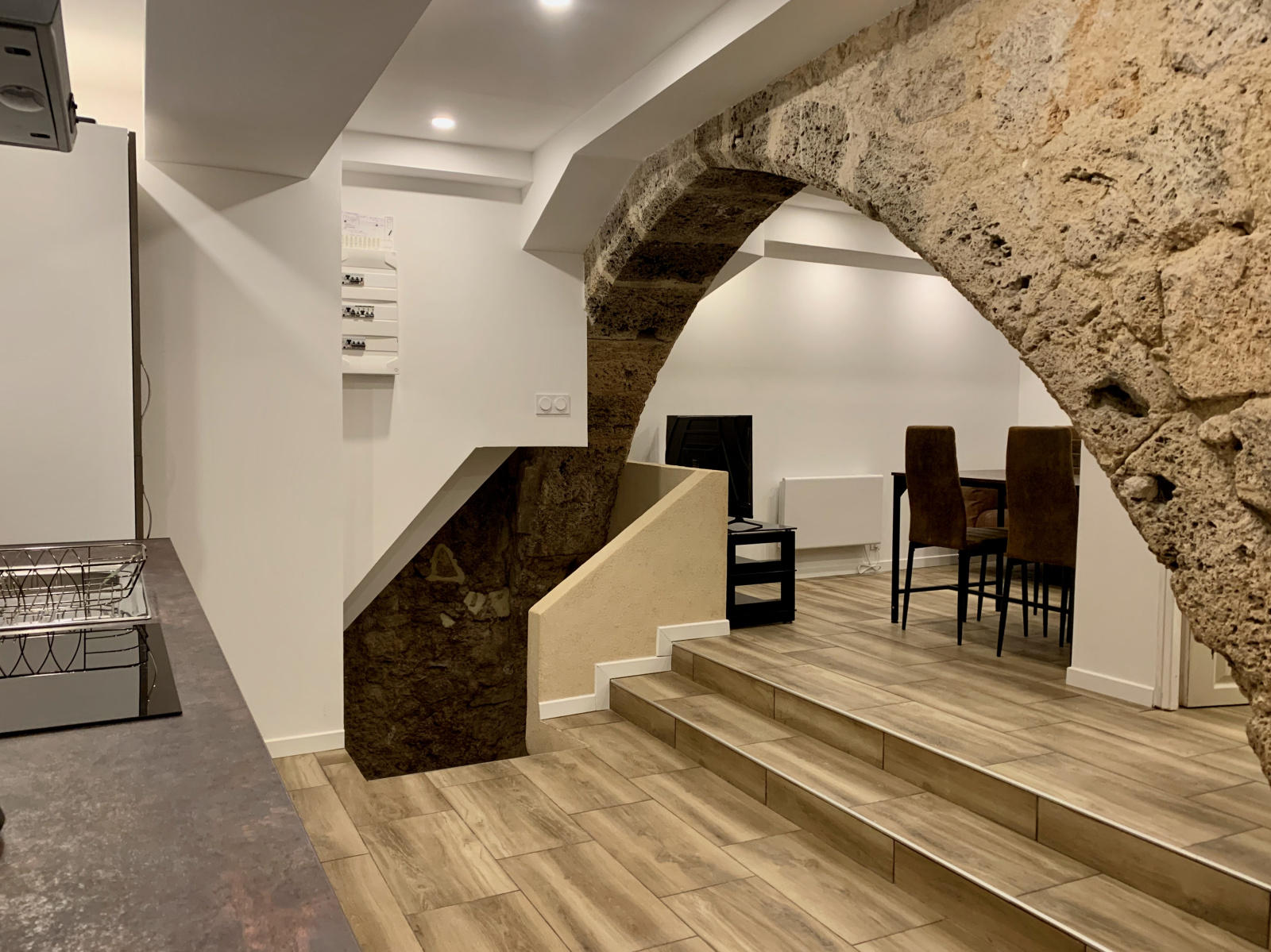 Découvrez ce studio meublé unique situé au rez-de-chaussée d’un superbe bâtiment en pierre datant d’avant 1500, entièrement rénové avec goût. Un lieu chargé d’histoire qui offre aujourd’hui un cadre de vie moderne et confortable.
