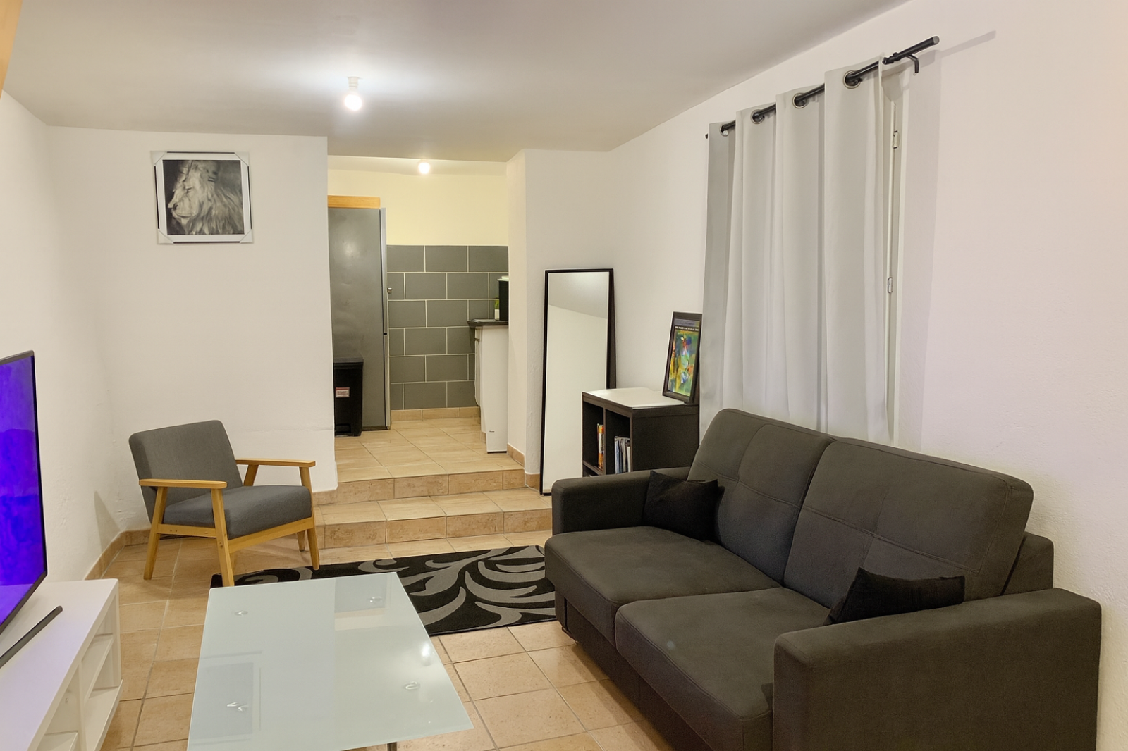 - Une pièce de vie avec coin cuisine ouvrant directement sur une terrasse d’environ 11 m², idéale pour profiter des beaux jours.