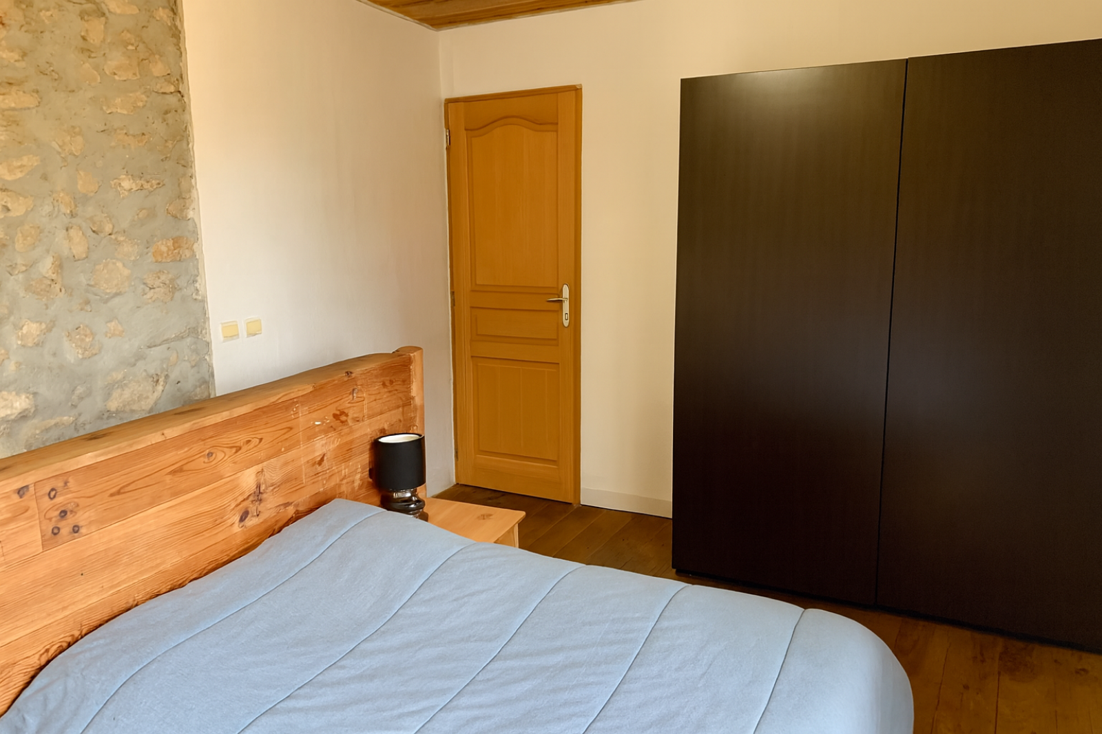 Salon avec coin cuisine, WC, salle d’eau, chambre avec balcon. Chauffage électrique, double vitrage PVC, volets bois.