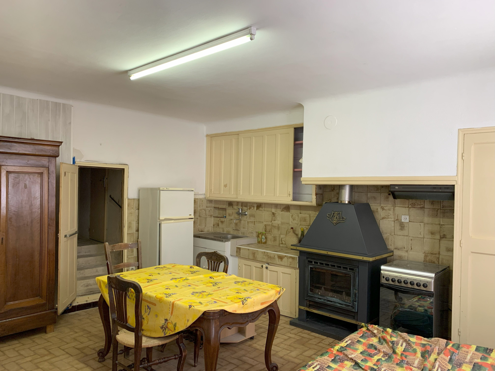 Une maison de village d'environ 90 m² divisée en deux appartements : - Au rez-de-chaussée, une entrée et un studio de 32 m² environ avec une cuisine équipée meublée, une cheminée, salle d'eau avec WC, débarras et chaufferie. -Au 1er et 2ème et 3ème étage se trouve un duplex d'environ 50m² de type T4 composée d'une cuisine/salon meublé avec placard et débarras, salle d'eau avec WC et buanderie, deux chambres et un bureau. Ce bien est actuellement loué. En équipement ce bien bénéficie du double vitrage en PVC, de volets en bois et métal, une cheminée, chauffage électrique, assainissement au tout-à -l'égout et une cave voûtée de 32 m2 environ. Idéal investisseur. Les informations sur les risques auxquels ce bien est exposé sont disponibles sur le site Géorisques http://www.georisques.gouv.fr. Consommation énergie finale 190 kWh/m²/an.