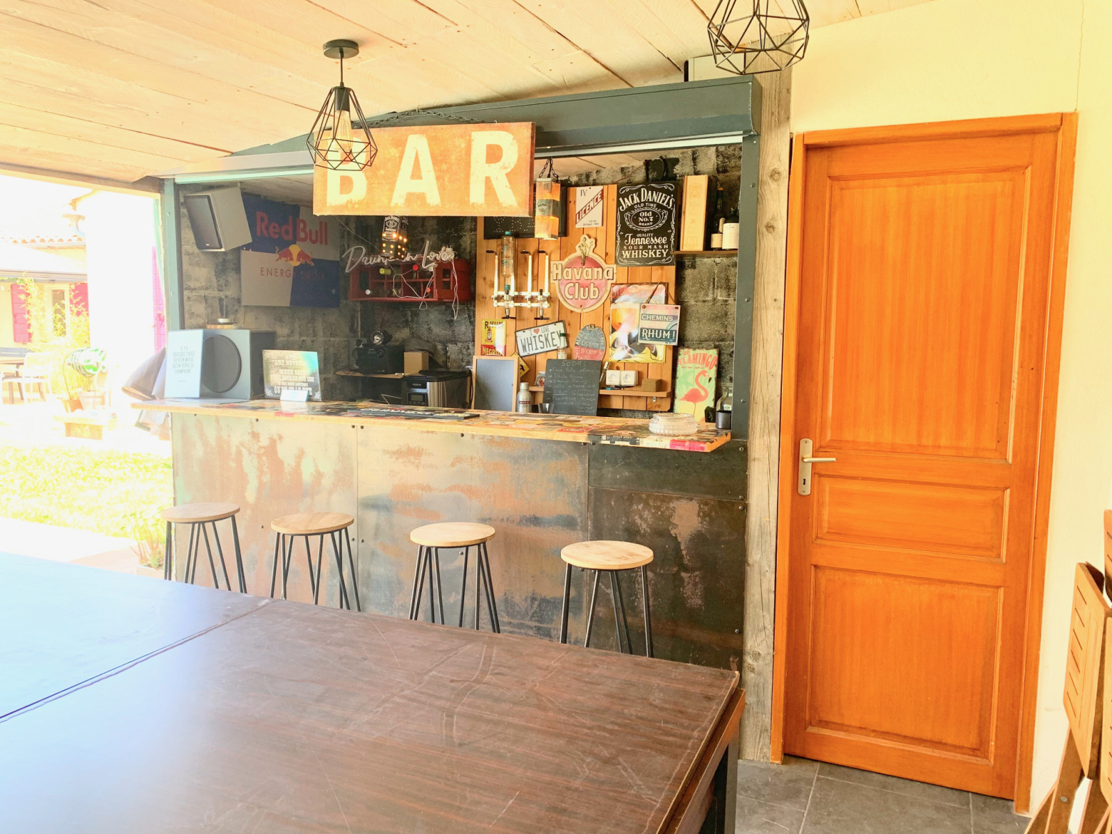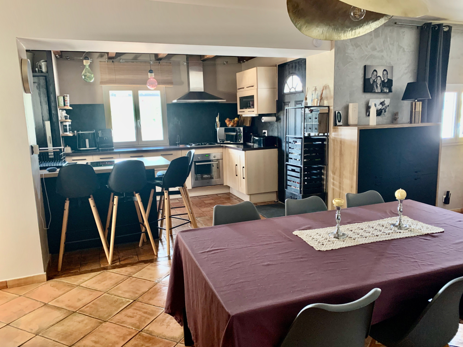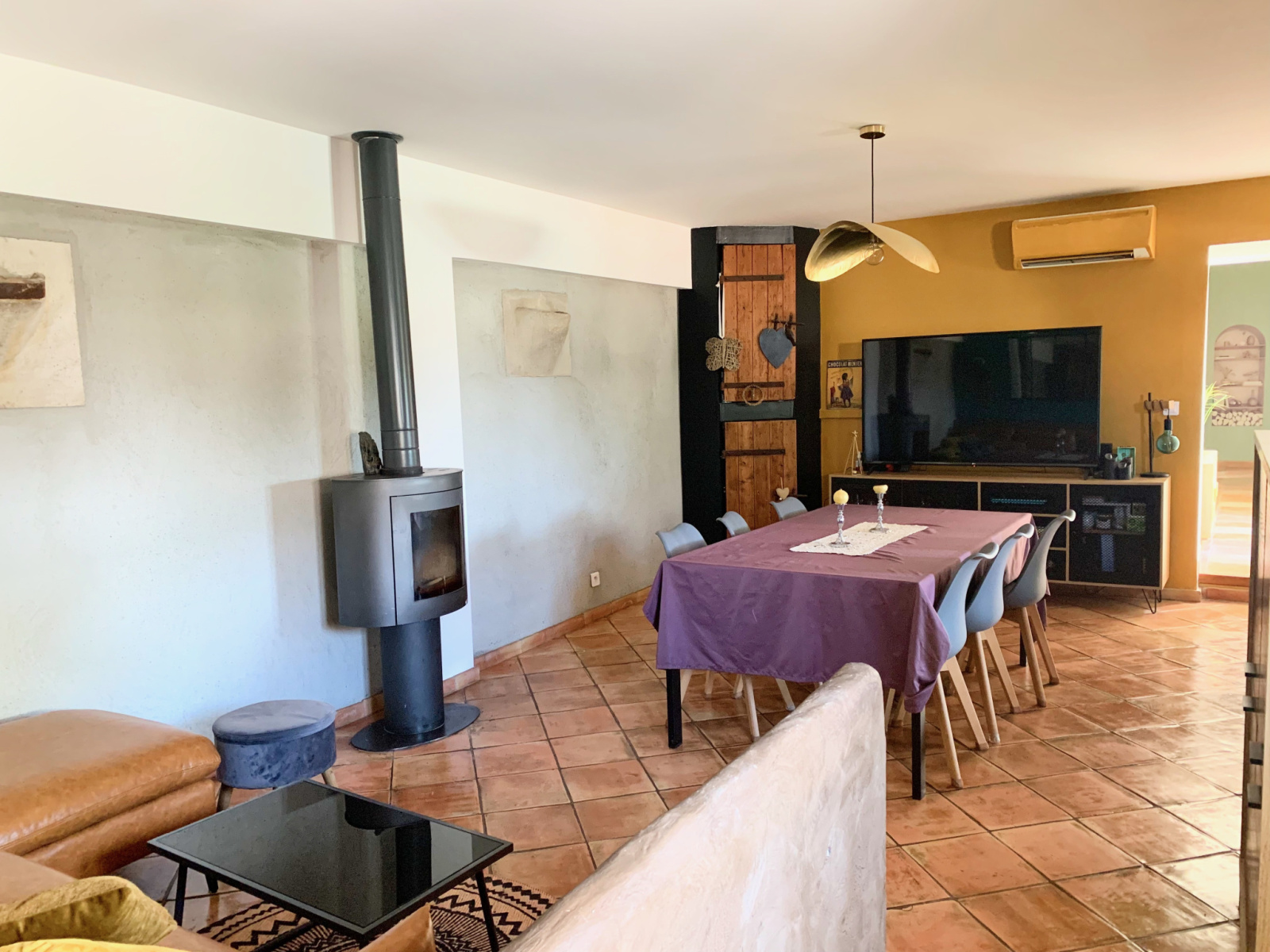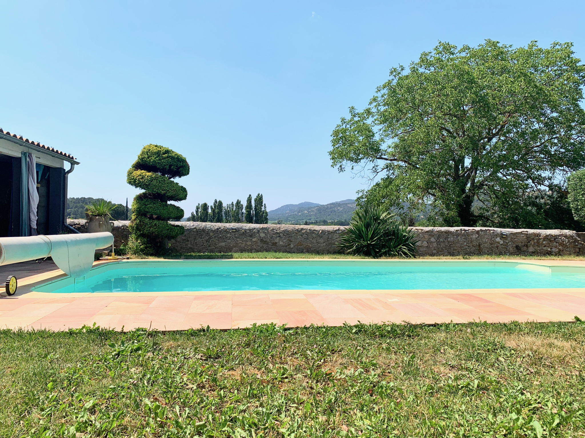 Cachée au coeur du village, une propriété de 188 m2 entièrement rénovée en 2011 , avec un performance énergétique classé en B , composée de : une maison principale individuelle T5 de plein pied avec un espace de vie de 36 m2 avec cuisine équipée, cheminée et Home Cinéma avec avec enceinte filaire dans le plafond (pour un effet sonore incroyable!), 4 belles chambres dont une suite parentale avec salle d'eau et WC, une deuxième salle d'eau, WC indépendant, un bureau, une buanderie/ chaufferie et un dressing /placard; non attenant à la maison se trouve un gite indépendant T3 de 57 m2 avec cuisine d'été avec four à pizza en béton réfractaire et pierre de togne pour cuire au feu de bois, une chambre, salle d'eau avec WC, terrasse privative et accès indépendant. A l'extérieur se trouve deux box, une piscine de 8,5 x 4,5 avec douche extérieur , un jacuzzi, plusieurs terrasses, un barbecue maçonné et poolhouse avec bar. En équipement ce bien bénéficie de double vitrage en PVC, 16 panneaux solaires avec revente à EDF, 2 panneaux solaires dediés à la production de l'eau chaude, climatisation reversible, raccordement tout à légout et un jardin entièrement clôturé sur une parcelle dominante avec vue imprenable sur les champs de Rians de 700 m2 environ. Bien peut être vendu meublé. Etat impeccable : opportunité à saisir. Les informations sur les risques auxquels ce bien est exposé sont disponibles sur le site Géorisques http://www.georisques.gouv.fr. Consommation énergie finale 48 kWh/m²/an. Taxe Foncière 1080â?¬