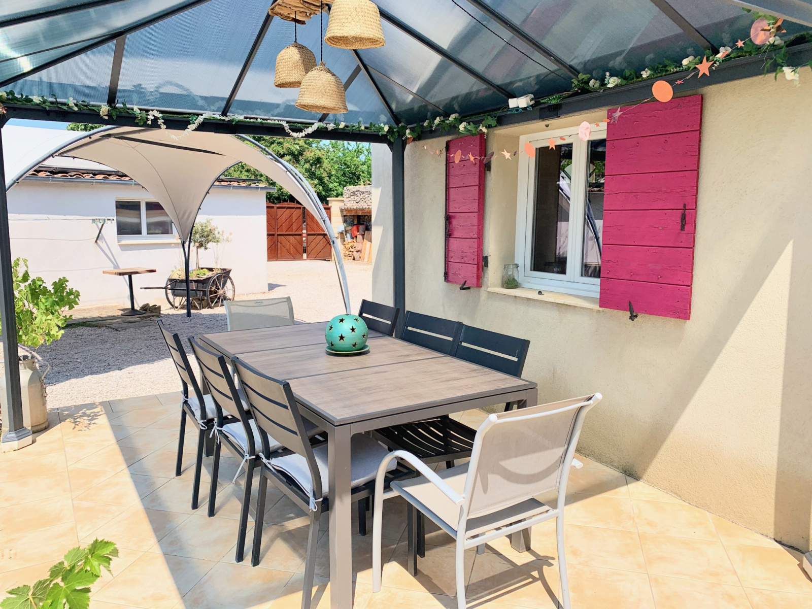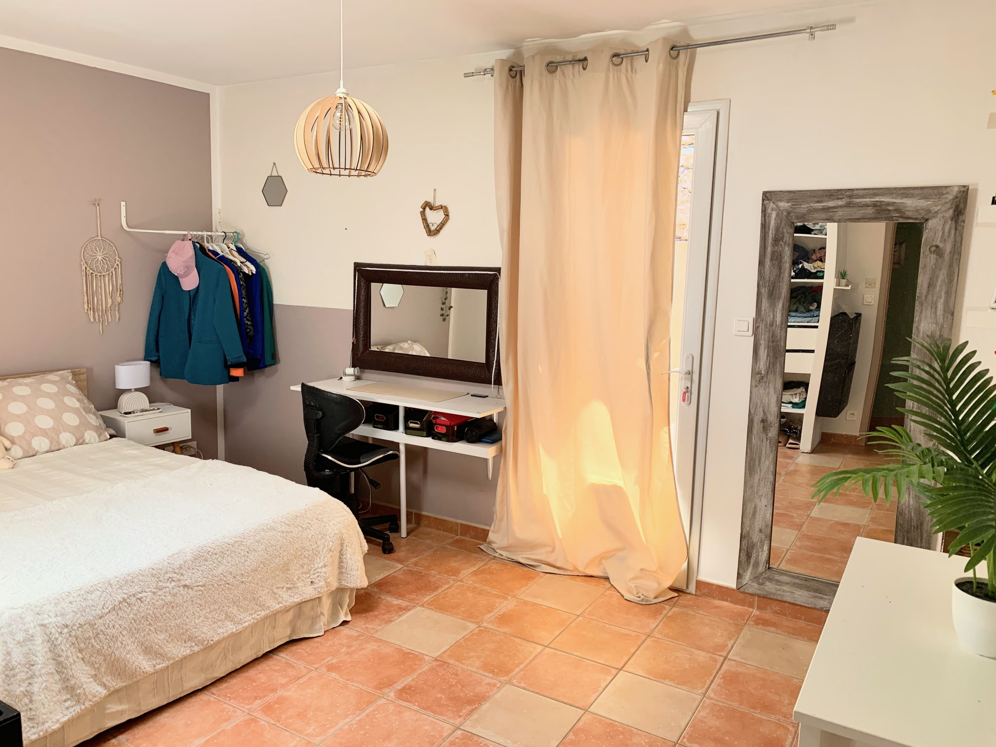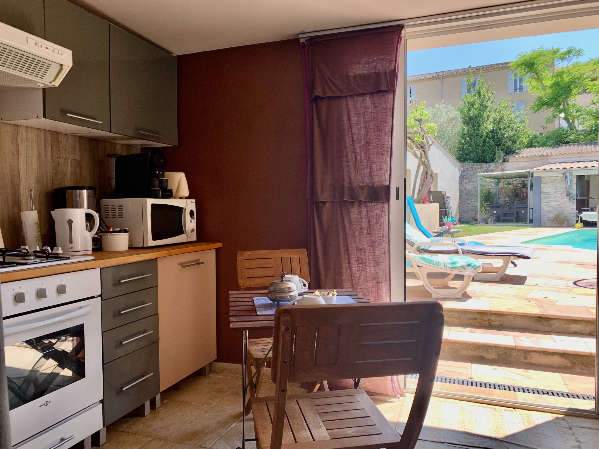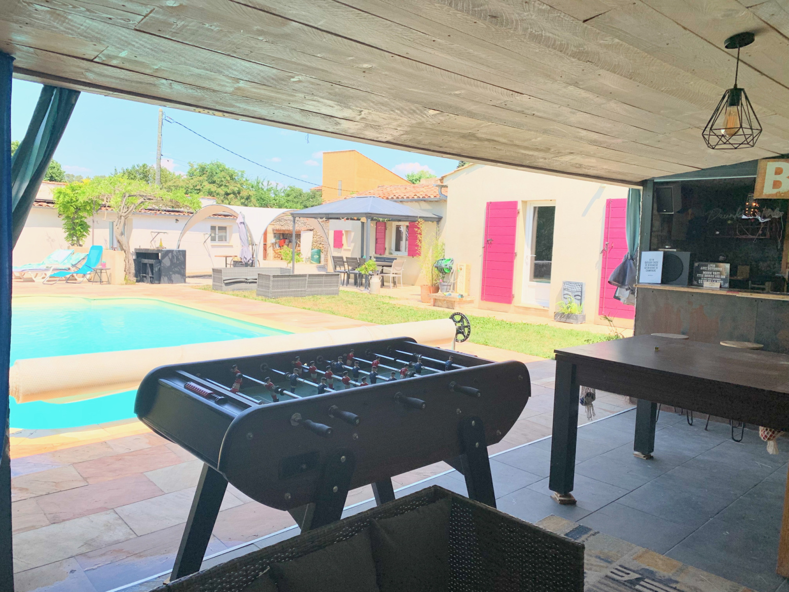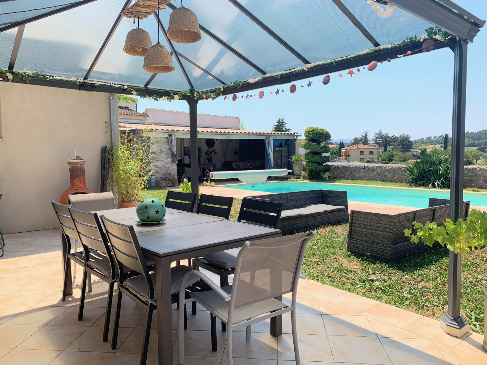 Cachée au coeur du village, une propriété de 188 m2 entièrement rénovée en 2011 , avec un performance énergétique classé en B , composée de : une maison principale individuelle T5 de plein pied avec un espace de vie de 36 m2 avec cuisine équipée, cheminée et Home Cinéma avec avec enceinte filaire dans le plafond (pour un effet sonore incroyable!), 4 belles chambres dont une suite parentale avec salle d'eau et WC, une deuxième salle d'eau, WC indépendant, un bureau, une buanderie/ chaufferie et un dressing /placard; non attenant à la maison se trouve un gite indépendant T3 de 57 m2 avec cuisine d'été avec four à pizza en béton réfractaire et pierre de togne pour cuire au feu de bois, une chambre, salle d'eau avec WC, terrasse privative et accès indépendant. A l'extérieur se trouve deux box, une piscine de 8,5 x 4,5 avec douche extérieur , un jacuzzi, plusieurs terrasses, un barbecue maçonné et poolhouse avec bar. En équipement ce bien bénéficie de double vitrage en PVC, 16 panneaux solaires avec revente à EDF, 2 panneaux solaires dediés à la production de l'eau chaude, climatisation reversible, raccordement tout à légout et un jardin entièrement clôturé sur une parcelle dominante avec vue imprenable sur les champs de Rians de 700 m2 environ. Bien peut être vendu meublé. Etat impeccable : opportunité à saisir. Les informations sur les risques auxquels ce bien est exposé sont disponibles sur le site Géorisques http://www.georisques.gouv.fr. Consommation énergie finale 48 kWh/m²/an. Taxe Foncière 1080â?¬