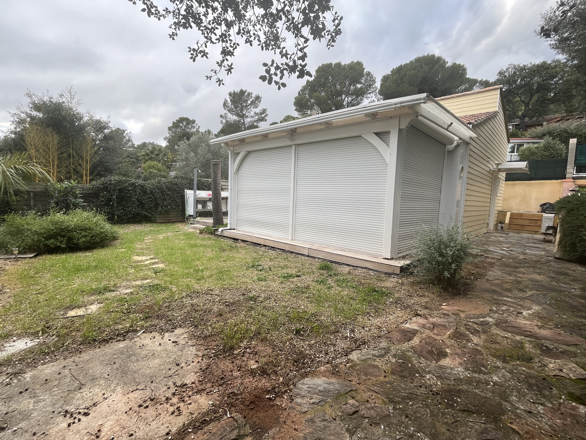 La Crau (83260)Cabanon construit en 2009, situé dans le parc résidentiel de loisirs Domaine le Pinédou à La Crau. Ce bien d’environ 76 m² (hors loi Carrez) se compose d’une entrée d’environ 6 m², d’un vaste séjour lumineux d’environ 26 m² ouvert sur une cuisine équipée de près de 9 m² avec un comptoir de bar, d’une buanderie, d’un WC indépendant et d’une salle de bains comprenant une grande baignoire, une douche, des rangements, un meuble vasque et un sèche-serviettes.