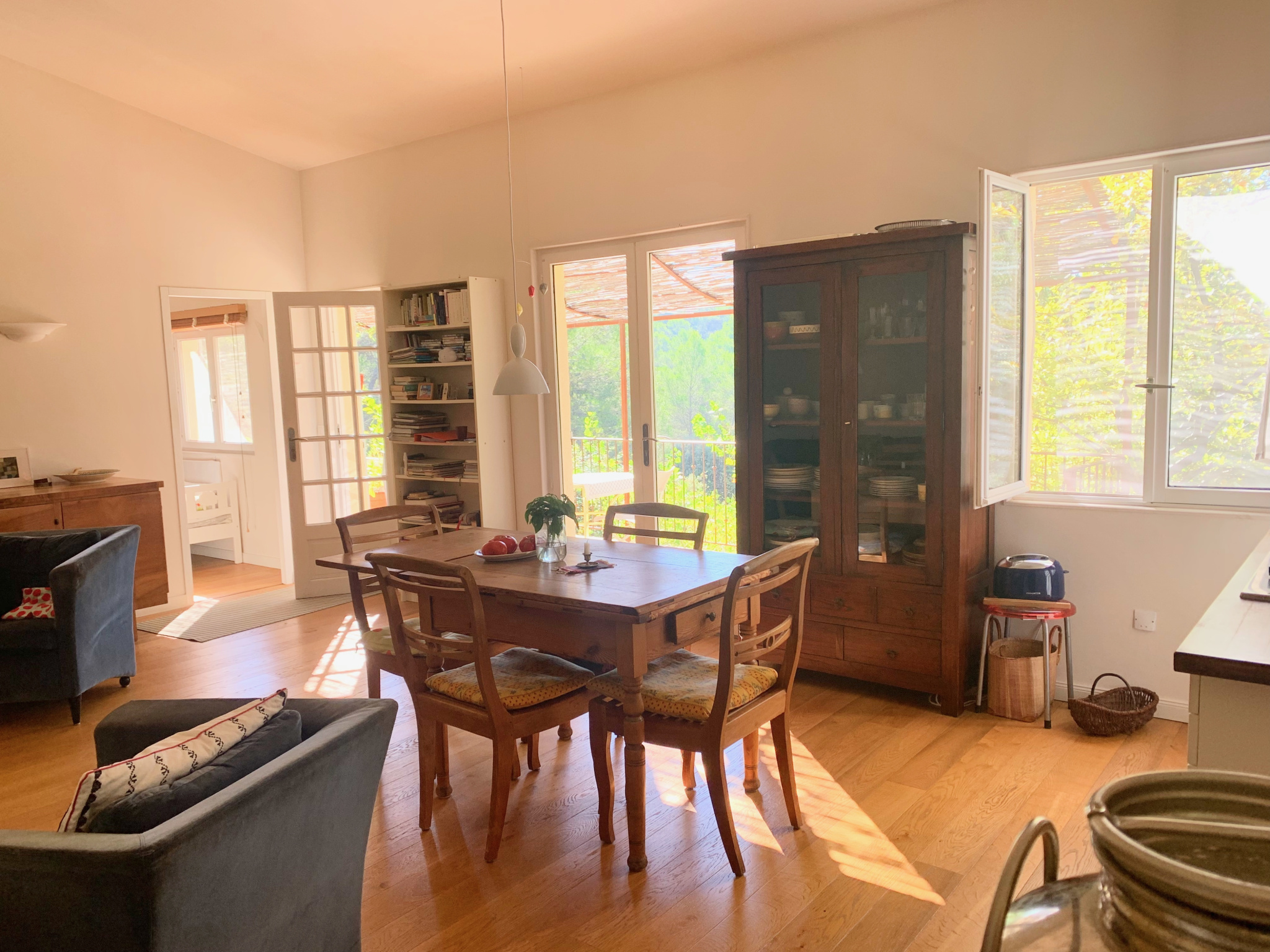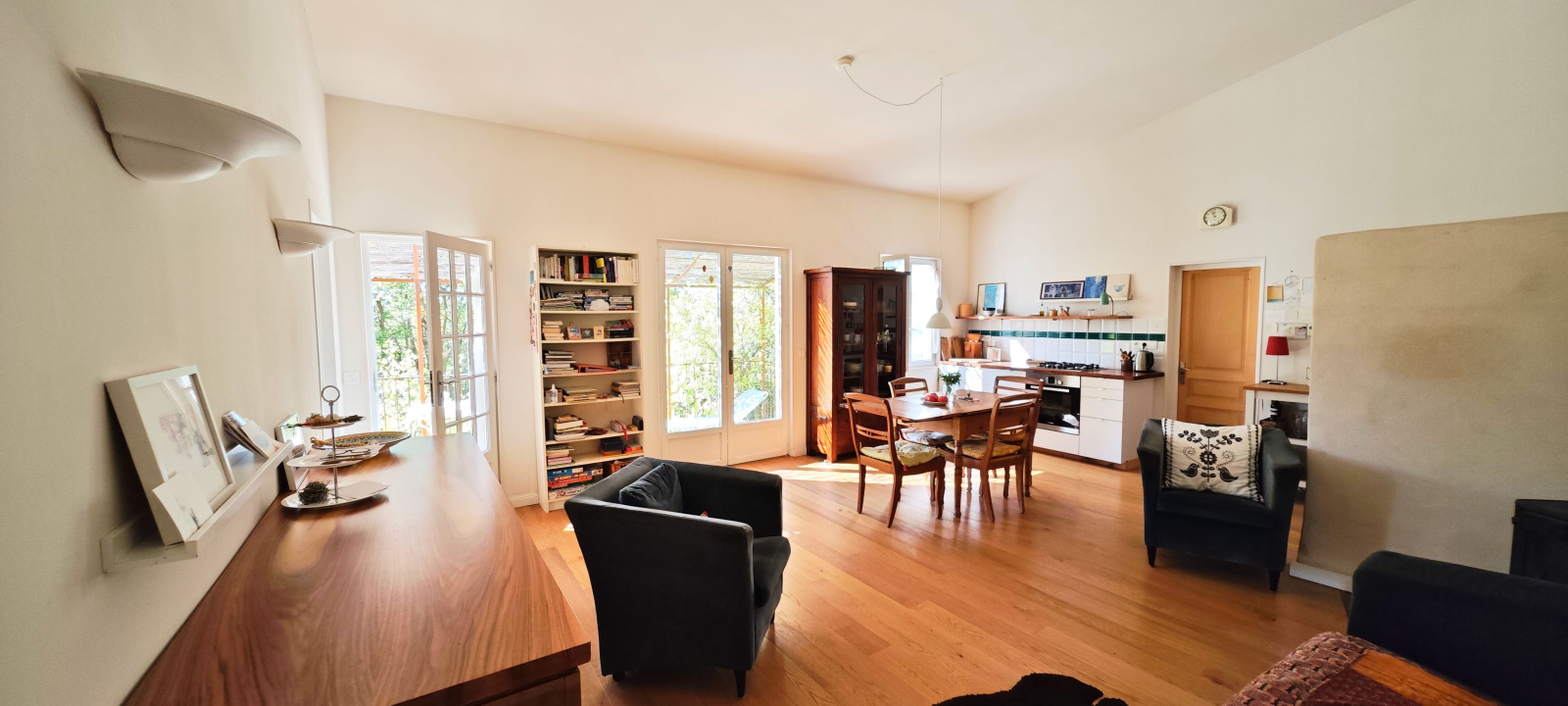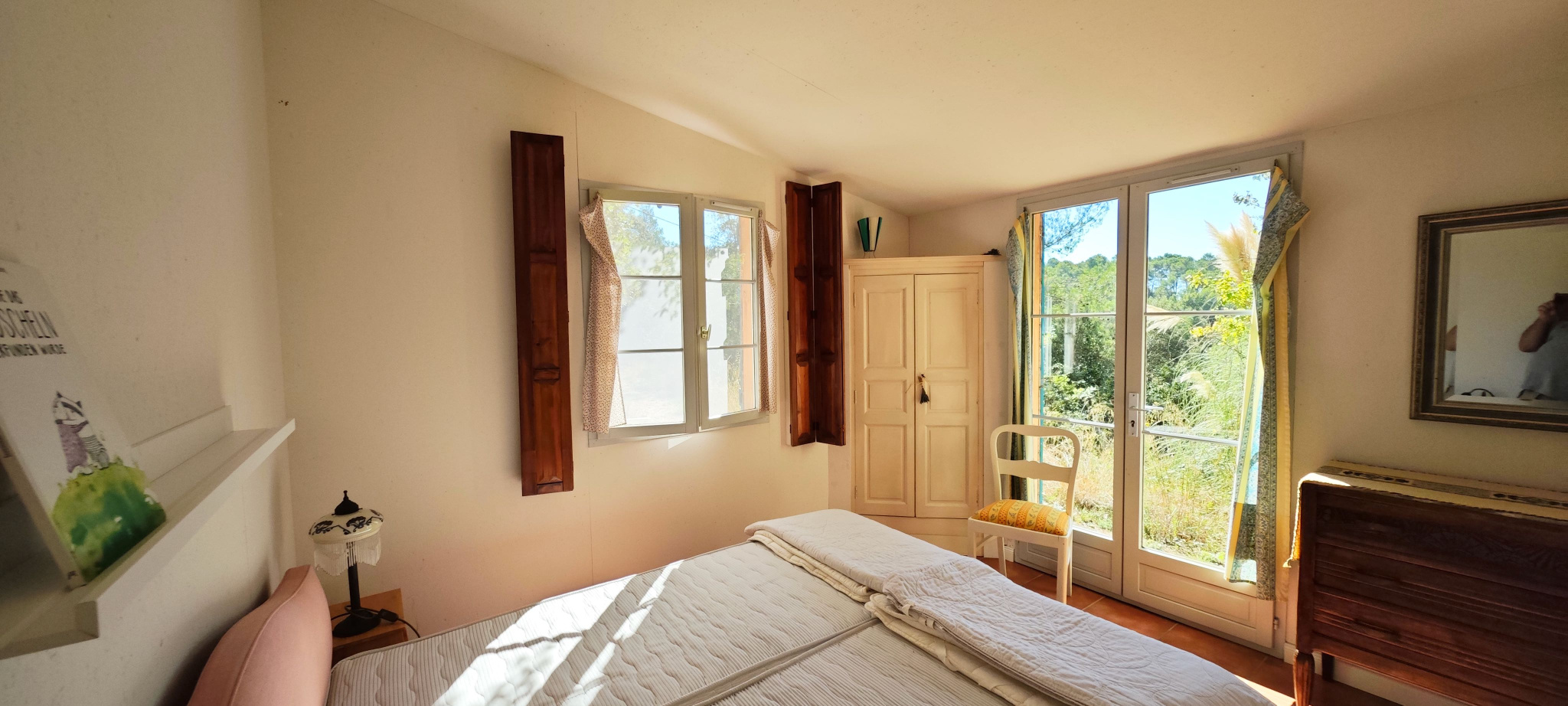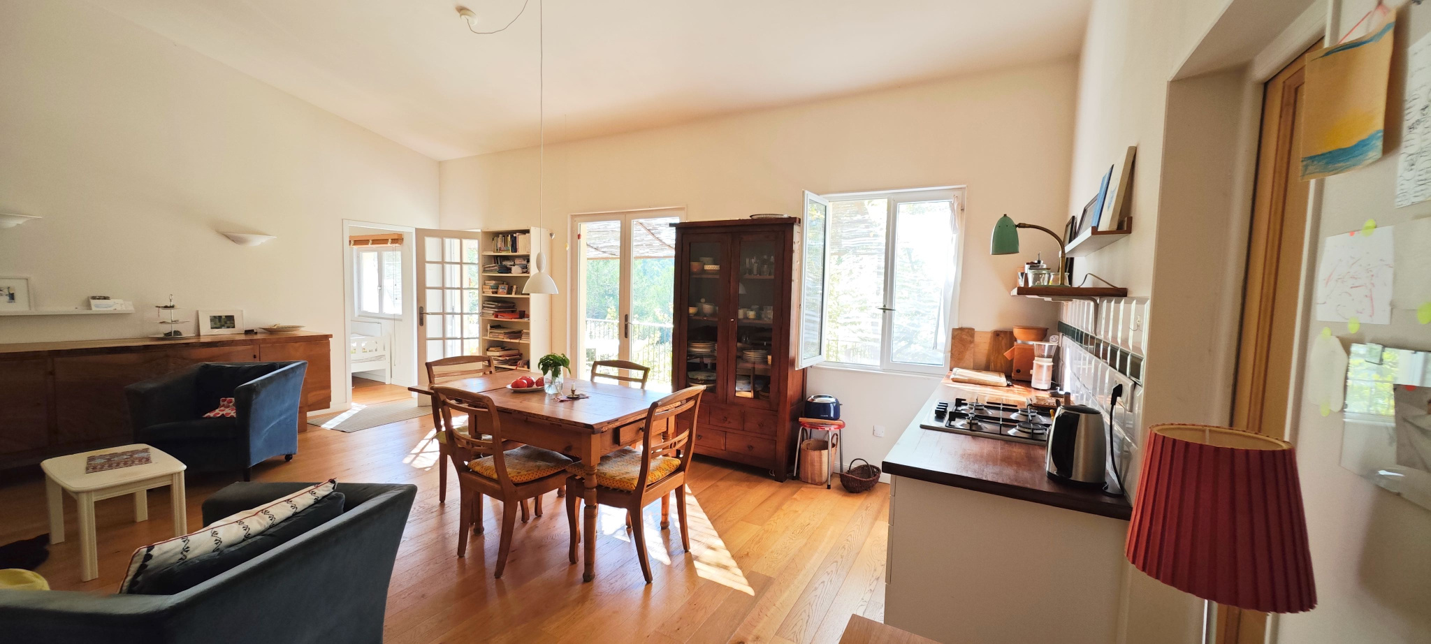 Barjols (83670)Nichée sur un terrain de 9 337 m² au cœur de la Provence Verte, cette propriété rare offre une vue imprenable sur la montagne de la Sainte-Baume. La maison principale de 72 m² propose une grande pièce de vie lumineuse avec cuisine équipée, cheminée et plafond cathédrale, deux chambres, mezzanine, WC indépendant et salle d’eau avec WC. Plusieurs dépendances rénovées complètent l’ensemble : un cabanon T1 habitable de 9 m² avec salle d’eau, un studio d’enregistrement de 28 m² (pouvant être transformé en logement), un T2 en construction bois indépendant de 23 m², ainsi que des annexes (carport, atelier, stand mobilhome, terrain de boules). Le tout dans un environnement naturel exceptionnel, à proximité d’Aix-en-Provence, Marseille et des Gorges du Verdon. Travaux récents, gîtes non attenants, calme absolu et potentiel d’accueil. Idéal pour projet familial ou touristique.