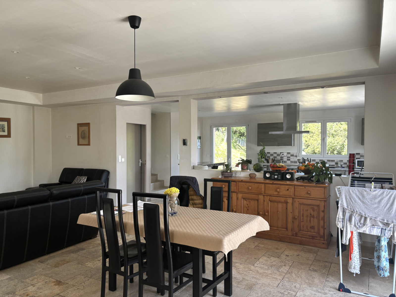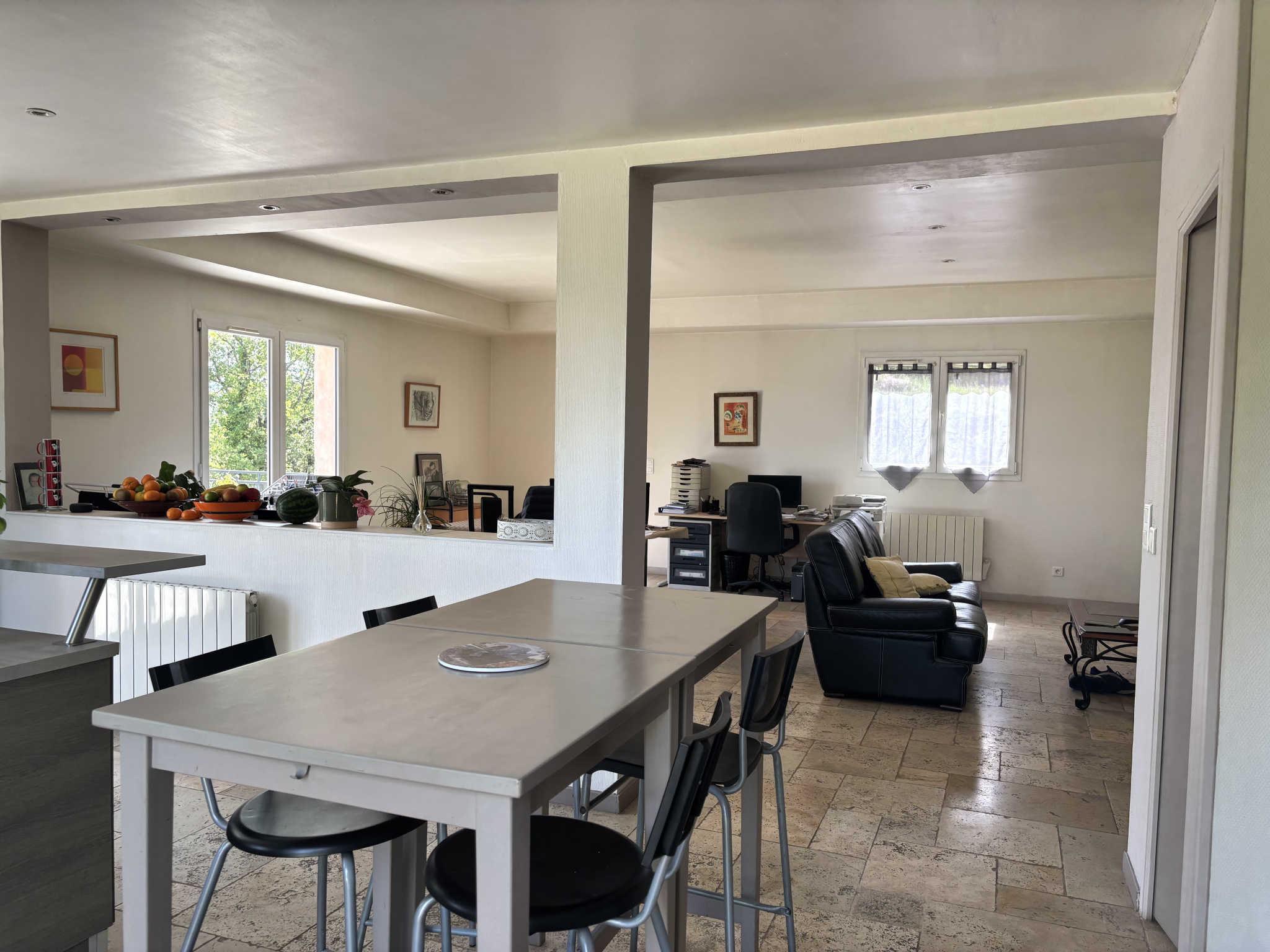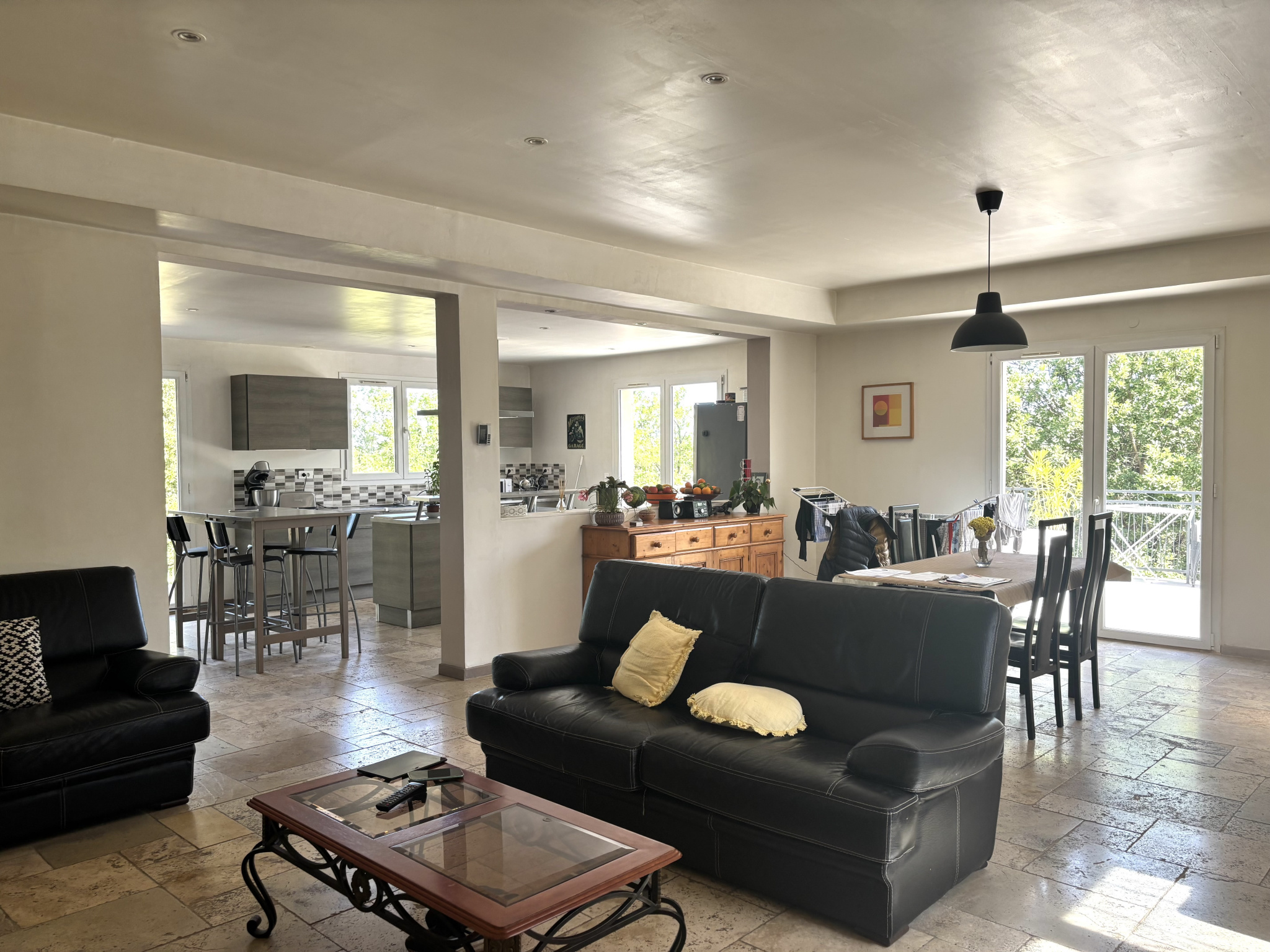 Fox-Amphoux (83670)Située à FOX-AMPHOUX maison T5 d'environ 148m² habitable comprenant au rez-de-chaussée, un garage de 50m², au 1er étage un salon salle à manger ouverte ainsi qu'une cuisine, un cellier, un WC, un poêle à granules. Au 2ème étage 4 chambres dont 2 suites parentales, une salle de bain et WC séparé. Cette maison dispose de double vitrage avec volets en bois sur une parcelle d'environ 1331m² avec terrasse de 50m². Les informations sur les risques auxquels ce bien est exposé sont disponibles sur le site Géorisques http://www.georisques.gouv.fr. Consommation énergie finale 67 kWh/m²/an.