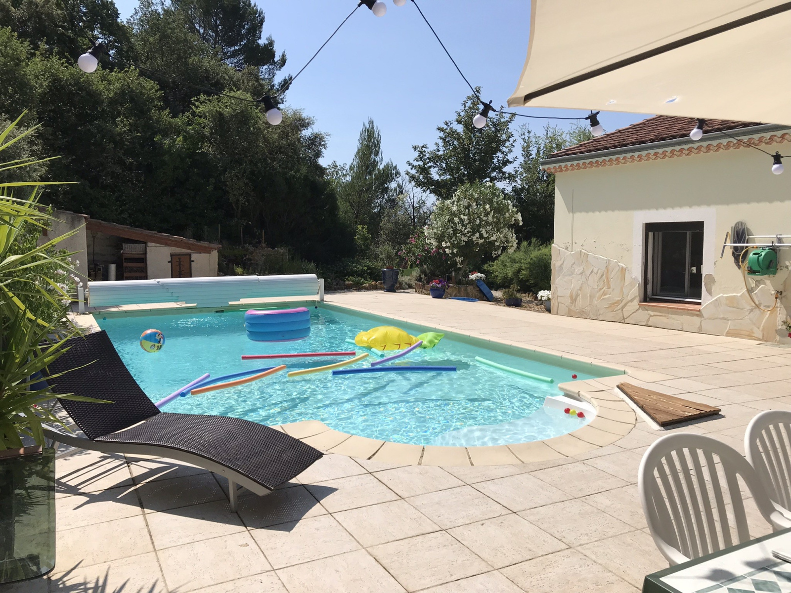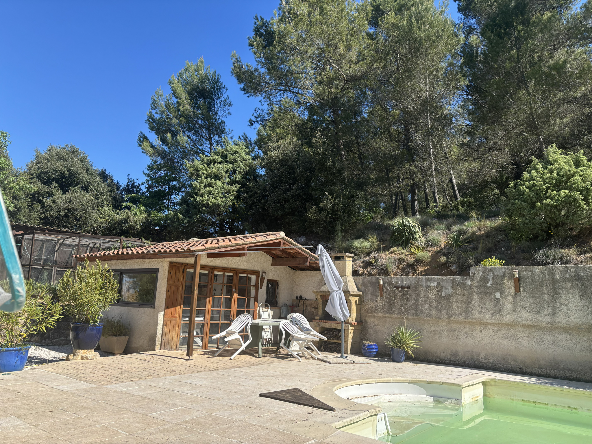 La Verdière (83560)Découvrez cette vaste maison familiale à La Verdière, idéale pour une grande famille ou un projet d'accueil. Construite en 1985, elle offre 10 pièces dont 6 chambres et 3 salles d'eau, ainsi qu'un appartement indépendant T2 de 55 m² au rez-de-chaussée avec cuisine équipée. Profitez d'un cadre exceptionnel avec un jardin de 7800 m², deux vérandas, de grandes terrasses extérieures (100 m²), une piscine 10x5m, une cave, un atelier et une buanderie. Le chauffage au bois avec cheminée insert diffuse la chaleur dans toutes les pièces. Le bien est en bon état général, non meublé, et dispose d'une cuisine extérieure équipée d'un four à pizza.