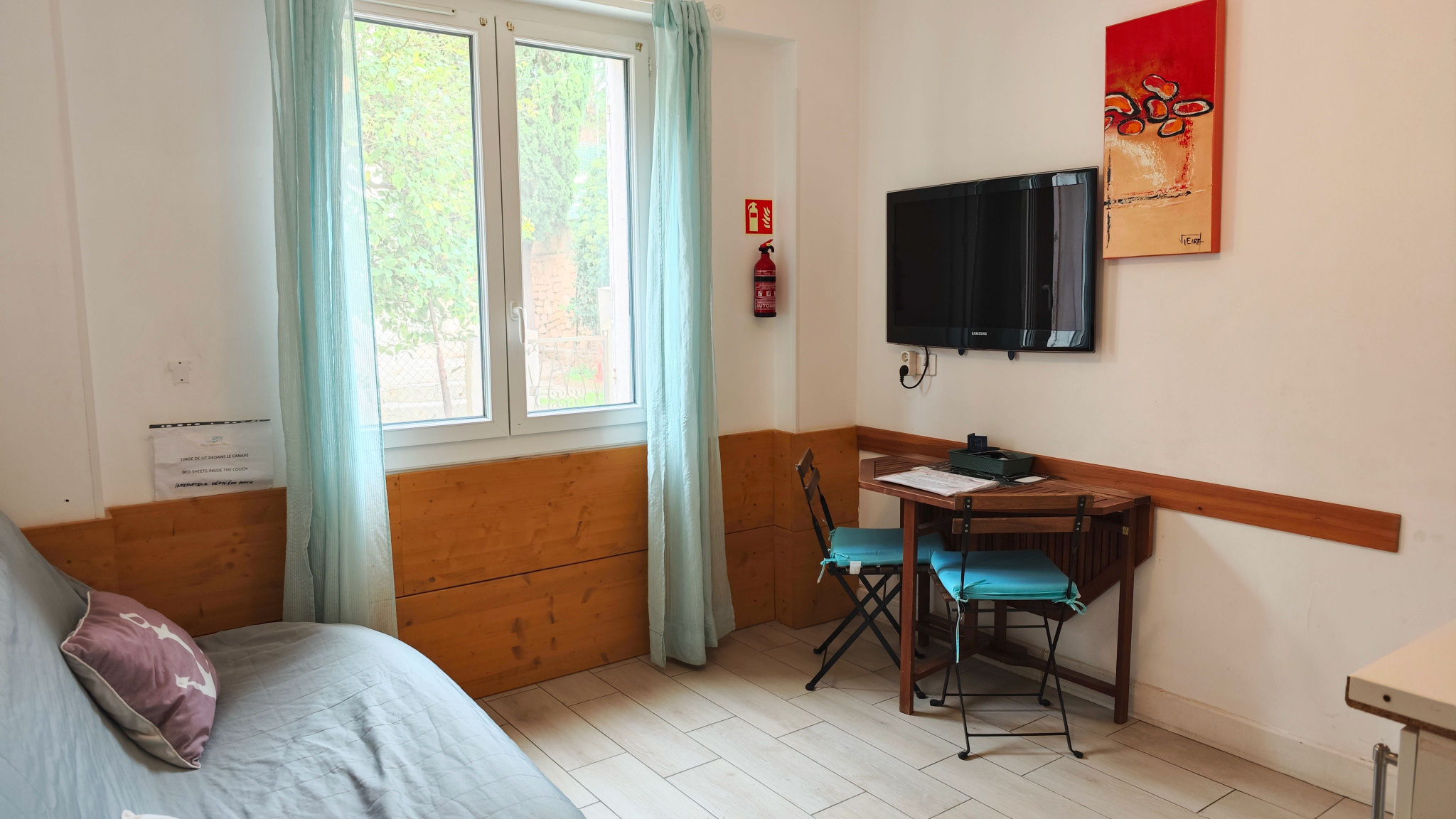 Unité 1 : T1 de 13 m² en rez-de-chaussée, avec terrasse privative, kitchenette équipée, salle d’eau avec WC.